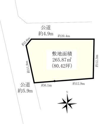 | 接道状況 | 北側約4.9m 西側約5.9m |