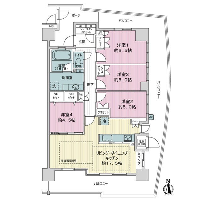 | バルコニー向き | 南・東・北 |