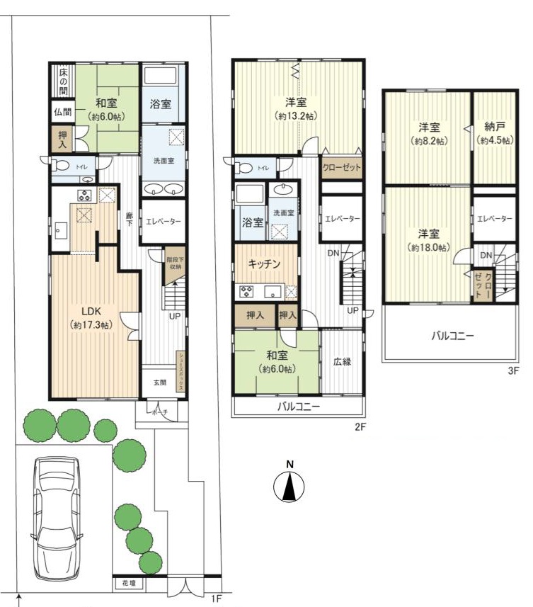 軽量鉄骨造3階建!ホームエレベーター有り♪